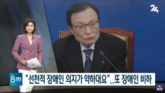 환영식에서 이해찬 더불어민주당 대표의 "선천적 장애인은 어려서부터 장애를 가지고 나오니까 의지가 좀 약하다고 한다"는 장애인 비하 망언을 겨냥해, "사람이니까 의지가 약한 사람이 있고, 강한 사람이 있는데 선천성, 후천성 장애인이라고 의지가 다른 것이 아니"라면서 "선천적 장애인이 결코 의지가 약하지 않다는 것을 보여드리겠다"고 일갈했다.